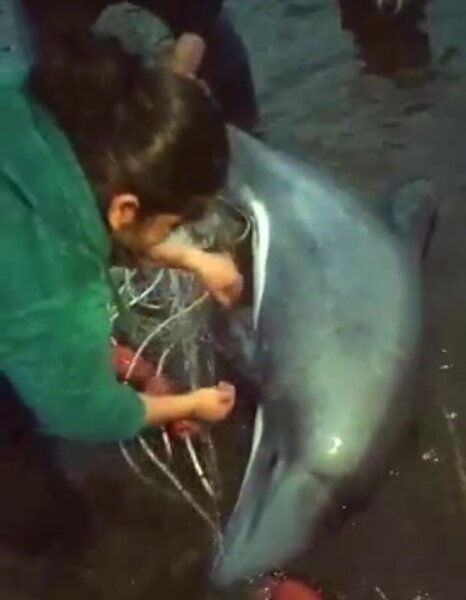 Liberan delfín chileno enmallado en redes de pesca furtiva en Puerto Puyuhuapi