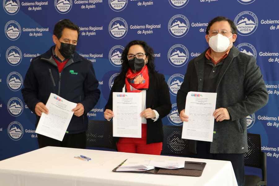 En una ceremonia en dependencias del Gobierno Regional de Aysén, se llevó a cabo la firma del convenio tripartito que tiene por objetivo entregar los productos asociados al Programa Transferencia de Fomento al Empleo de la Corporación Nacional Forestal, CONAF.