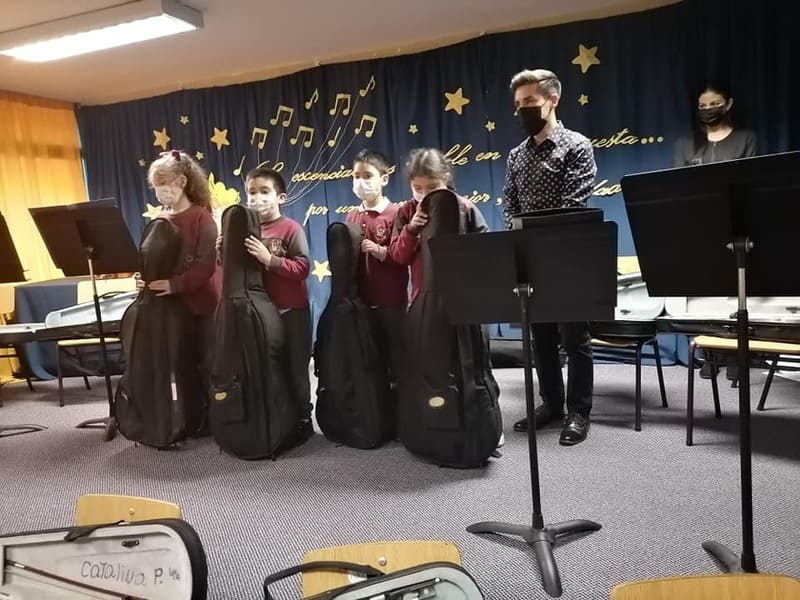 Es así que violas, violonchelos y violines fueron entregados a los alumnos y alumnas que componen esta Orquesta, a cargo de la directora musical, Patricia Araya, a través de talleres encabezados por monitores en cada uno de los instrumentos, de cara al aprendizaje acorde a los niños de primer ciclo de enseñanza básica.