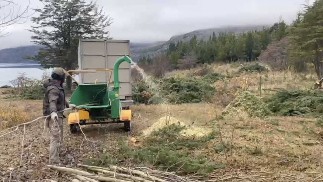 La chipeadora llegó en el mes de febrero. Con una gran potencia de corte, la operación contempla un convenio con la Municipalidad de Chile Chico para disponer, en distintos períodos, de la poda de los árboles emplazados en la vía pública.