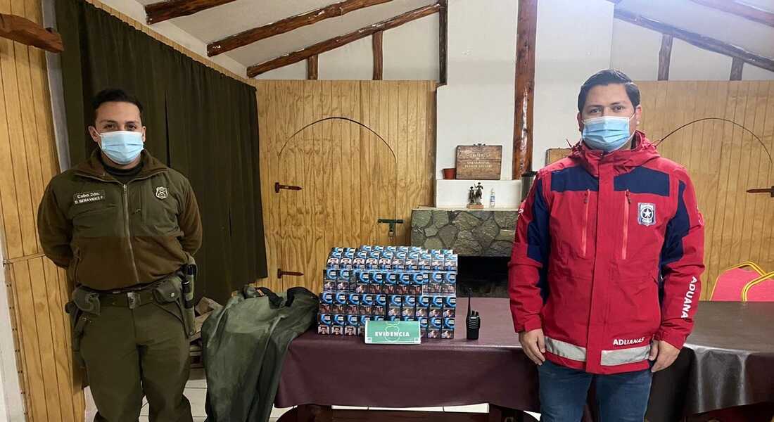 «El personal de Carabineros de frontera acudió al lugar, estaban efectuando un patrullaje preventivo en el sector fronterizo en pasos no habilitados, en donde la gente comúnmente está ingresando mercadería al país, obviamente cometiendo delitos aduaneros. Divisa esto el personal de la S.I.P y proceden a la detención, decomisando 500 cajetillas de cigarrillos de procedencia Argentina. Dentro de otras cosas se pudo ver que mantenían equipos de comunicación radial, lo cual utilizaban para poder hacer las coordinaciones para poder trasladar e ingresar de forma ilegal a Chile esos cigarrillos», detalló el Oficial.