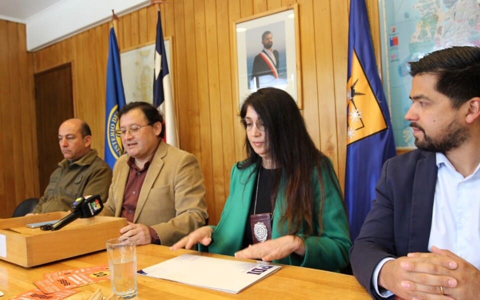 El Delegado Presidencial Regional, Rodrigo Araya, junto al Coordinador de Seguridad Pública, Cristóbal Barceló, prefecto (s) de la XI Zona de Carabineros, Jean Paul Aravena y Prefecta de la Policía de Investigaciones (PDI), Carolina Namor, encabezaron el lanzamiento de la iniciativa en la Región de Aysén.