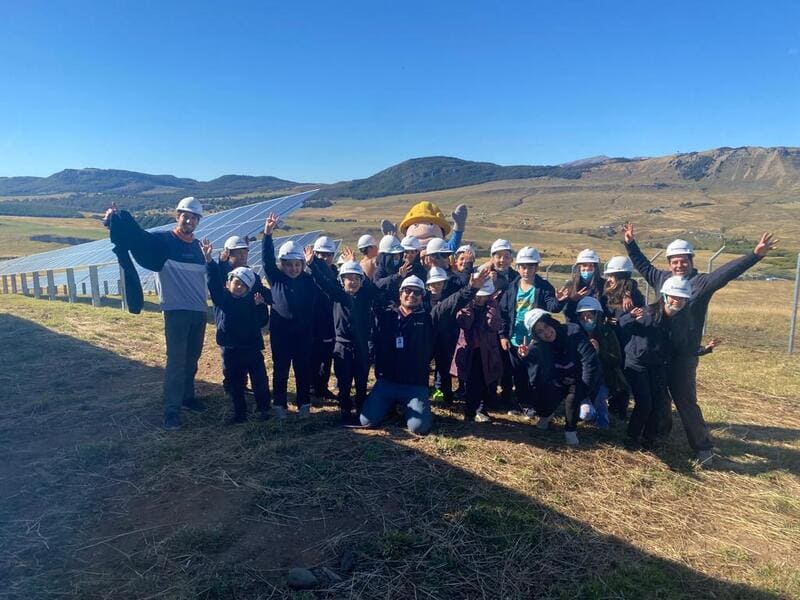 La planta fotovoltaica de Edelaysen ubicada en la localidad de El Blanco, es una de las más australes del país y tiene una capacidad de generación eléctrica de 2,99 MW en su peak de corriente continua. Durante la visita de los estudiantes de la Escuela Rural Rio Blanco, los niños pudieron conocer de cerca el funcionamiento de los paneles solares, el proceso de captación y transformación de la energía solar en energía eléctrica, y los beneficios de la energía renovable.