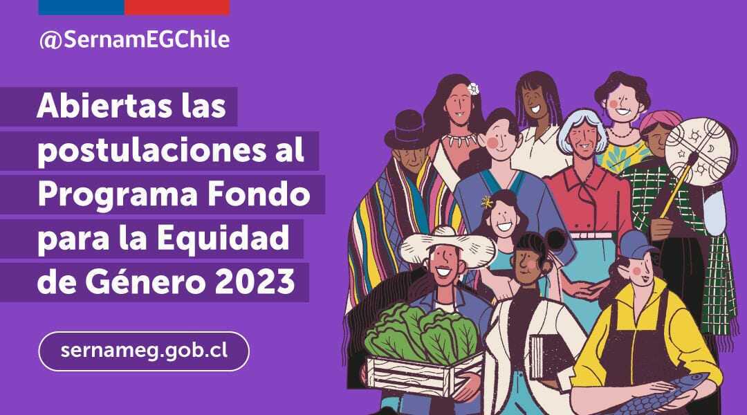 El proceso de postulación al Programa Fondo para la Equidad Género 2023 que entrega el Servicio Nacional de la Mujer y la Equidad de Género, ya se encuentra disponible para que personas naturales o jurídicas puedan presentar proyectos que busquen fortalecer la participación, asociatividad y liderazgo de las mujeres, en el marco de la equidad de género y los derechos humanos. El objetivo es apoyar el desarrollo de organizaciones de mujeres, a través del fortalecimiento de sus habilidades, competencias e incidencia en sus espacios de participación.