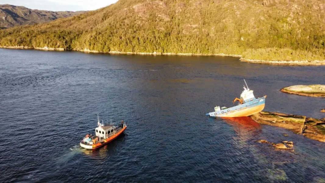 La embarcación afectada posee matricula de la región de Aysén y durante la jornada se esperaba que suba la marea, para poder reflotarla y retirarla del lugar.