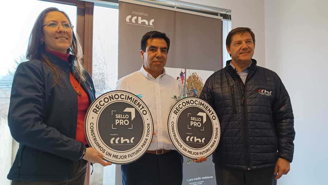 En un hito realizado en dependencias de la Cámara Chilena de la Construcción, la empresa socia de la Sede Coyhaique, Grupo Clean, recibió por parte del presidente nacional de la CChC, Juan Armando Vicuña, el vicepresidente nacional, Alfredo Echaverría y la presidenta regional del gremio de los constructores, Alejandra Alert, junto a la mesa directiva regional, el Sello PRO. Certificación que reconoce sus buenas prácticas y el compromiso con el desarrollo sostenible de la industria.