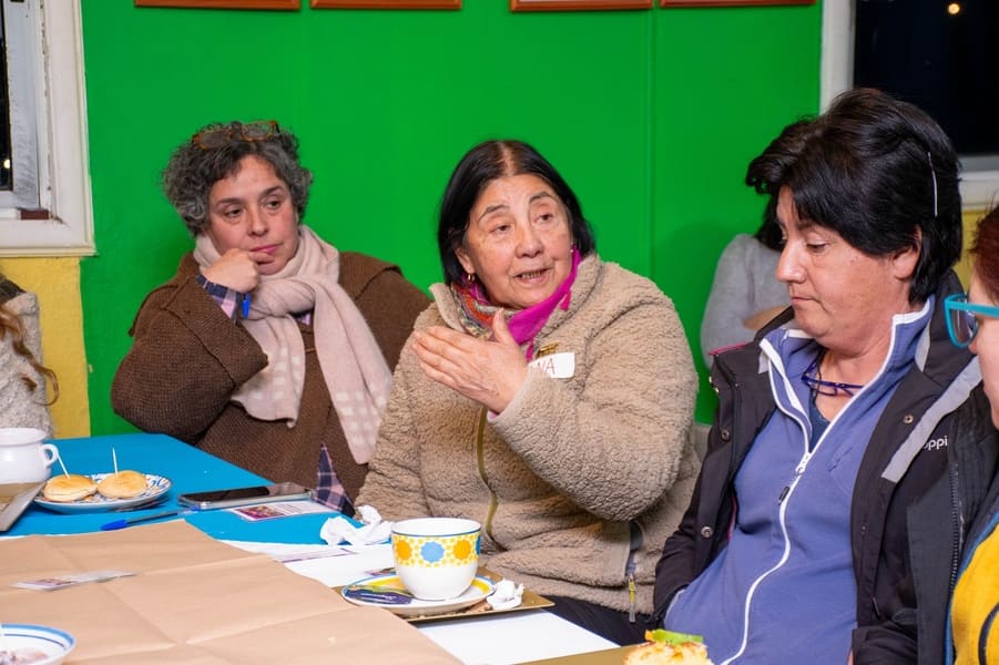 Otro momento relevante en la dinámica participativa es la revisión de la participación de las mujeres en la localidad. En el caso de Puerto Río Tranquilo, Antonia Cuyul Bórquez, manifestó: “me parece destacable que se valore a las mujeres que sacaron la cara por nosotras, así que es muy bueno el recordarlas y que siempre estén en nuestras memorias, para que después les podamos contar a nuestras nietas y nietos”.