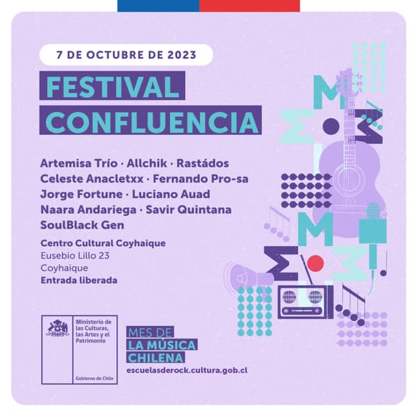 Las entradas de Confluencia 2023 se pueden retirar desde las 15 horas de este miércoles 4 de octubre en las oficinas de la Seremi de Culturas Aysén, 21 de mayo 574 Coyhaique.