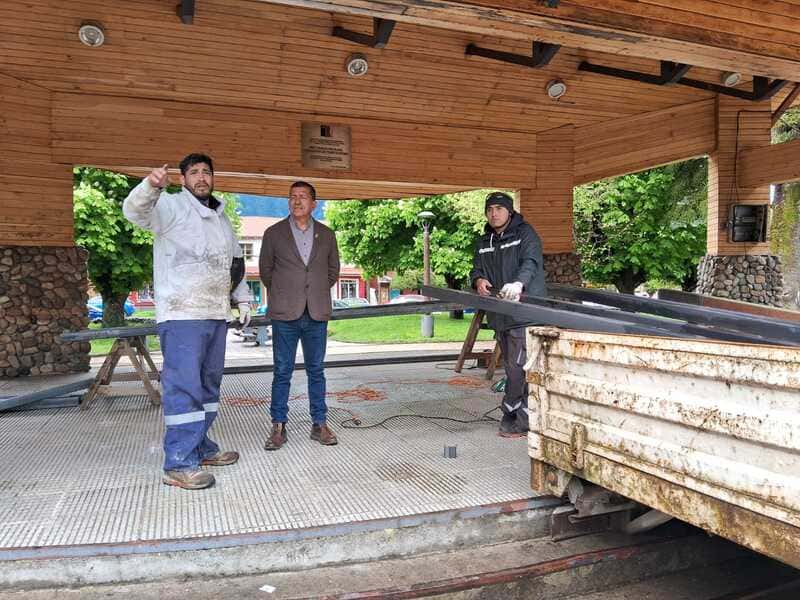 Funcionarios de la Dirección de Aseo Ornato y Medio Ambiente de la Municipalidad, se encuentran trabajando en el sector de la Plaza de Armas de Puerto Aysén, con la finalidad de levantar la estructura que permite sostener el árbol navideño y las luminarias alusivas a las festividades de fin de año.