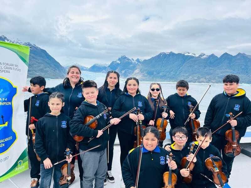 El viaje -que se gestó a través de la organización de padres y apoderados, apoyados por el Sindicato de mujeres de Puerto Chacabuco, las Porteñas; conjuntamente a la Corporación CorpAysén y Hotel Loberías del Sur-, finalizó con el arribo hasta glaciar San Rafael. Rodeado de icebergs y un paisaje imponente, se convirtió en el escenario perfecto para la interpretación musical a cargo de los instrumentos de cuerda.