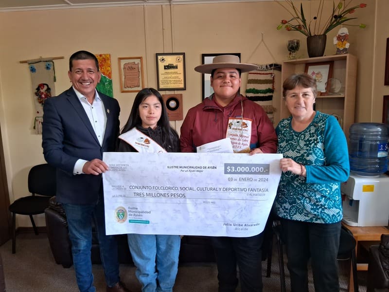 Contentos y agradecidos los bailarines y algunos integrantes de su organización, se reunieron con la máxima autoridad comunal, para recibir formalmente el apoyo económico que les permitirá llegar a tierras del norte de nuestro país. “Los chiquillos se van al Campeonato Jóvenes del Cobre, nos van a representar, así es que, muy agradecida de lo que hizo la Municipalidad, el señor Acalde, para que ellos puedan llegar a allá. A las personas nos cuesta mucho salir a representar a nuestra región, ya sea, en lo deportivo, en lo cultural, pero ahora con la ayuda los jóvenes pueden viajar para ser parte del campeonato”, señaló la presidenta de “Fantasía Sureña”, Erika Montecinos.