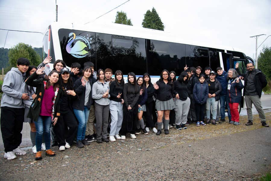 Esta vez fue el turno de estudiantes de segundo medio del Liceo de Puerto Cisnes, quienes escucharon atentos la reseña de las distintas paradas del recorrido, históricas propiedades que narran el patrimonio y la historia cisnense.