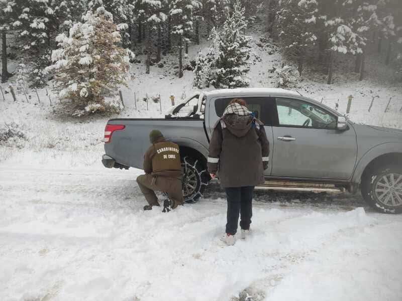 Un amplio despliegue en las rutas de la región de Aysén realiza Carabineros a lo largo del territorio con la finalidad brindar orientación y enfatizar en la puesta en práctica de medidas de seguridad básica, sumado a una conducción a la defensiva orientada a prevenir la accidentabilidad tras nevazón que se registra en la zona.