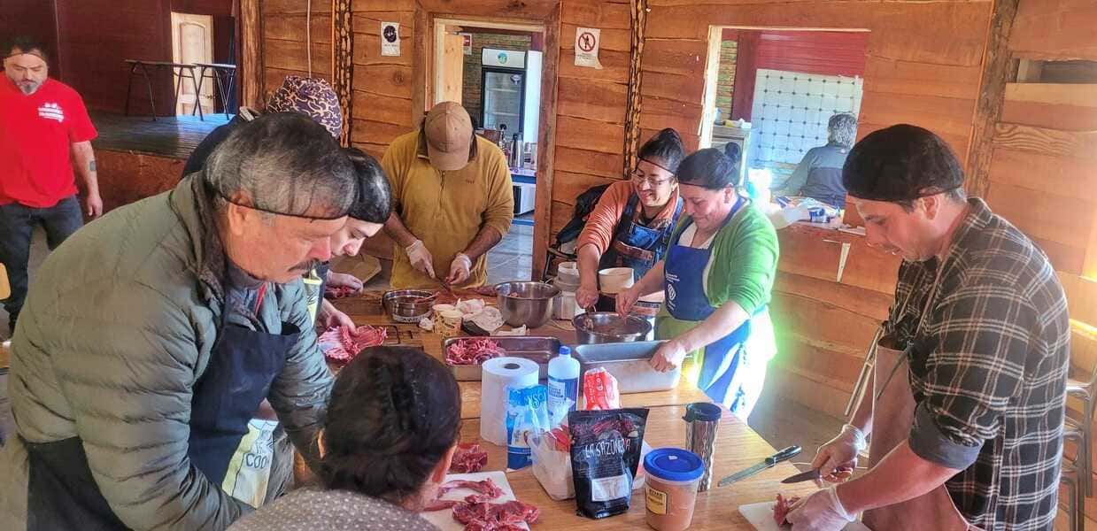 Además, se realizó una exhibición comunitaria de elaboración de jugo de manzana, donde las personas llegaron con sus frutos de quintas familiares paras ser exprimidos en el lugar y distribuido entre los asistentes. Junto a esto, se dieron a degustar los productos de los talleres del día previo: cocina vegana a cargo de los emprendedores «De la Raíz» de Coyhaique, y los resultados del curso de charcutería impartido por el cocinero Emerson Yáñez, como longanizas de chivo, queso de cabeza de cordero y vienesas de liebre y gallo, con la cual se preparó un completo extra XL.