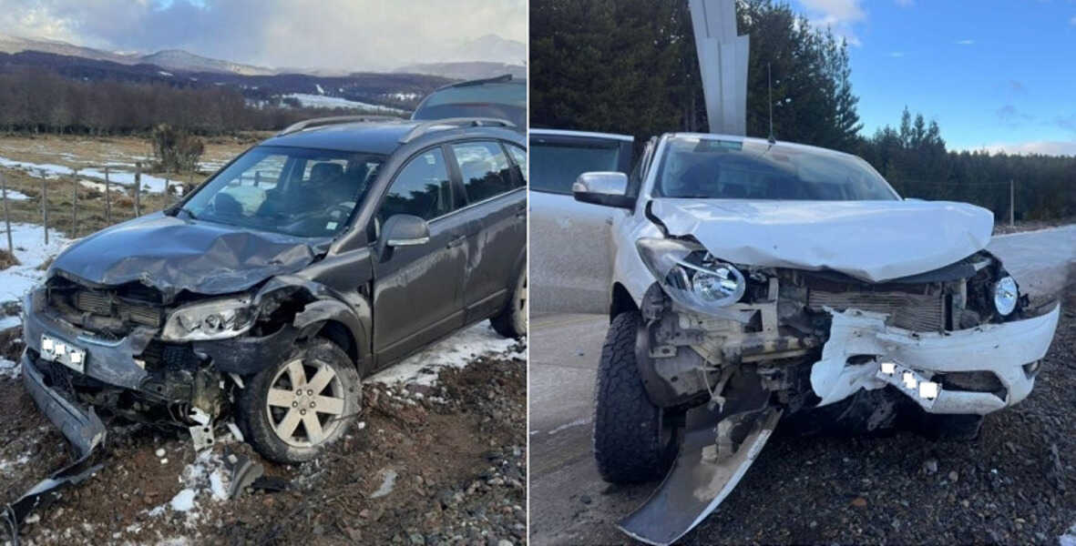 Producto de la fuerte colisión frontal entre una camioneta y un SUV, el segundo vehículo terminó semivolcado al costado de la ruta.