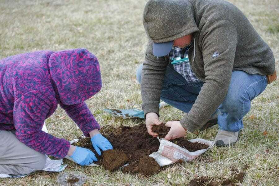 Utilizando una pala plana, se debe extraer un cubo de tierra de aproximadamente 20 cm de ancho por 20 cm de largo y de 15 a 20 cm de profundidad. Posteriormente, se debe inspeccionar cuidadosamente el interior de este cubo, desmenuzando el suelo con las manos para detectar la presencia de larvas de cuncunilla negra. Durante esta revisión, también se pueden identificar otras plagas de suelo como gusanos blancos y burritos. Este procedimiento debe repetirse al azar en el potrero entre 10 y 15 veces, o más si el terreno es grande, contando el total de larvas presentes en cada muestra.