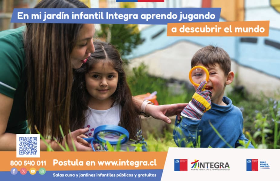 Fundación Integra, con 34 años de experiencia y más de 1.200 salas cuna y jardines infantiles gratuitos en todo el país, trabaja para que niñas y niños alcancen su desarrollo pleno, bienestar integral y aprendizajes significativos, a través de su protagonismo en espacios educativos amorosos, inclusivos, diversos y de calidad.