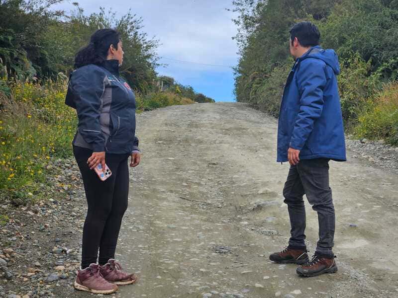La Secretaria Regional Ministerial de Obras Públicas, Paloma Jara Valdés viajó hasta Melinka con el director regional de Planeamiento MOP Wildman Duran y el Subdirector de Servicios Sanitarios Rurales de la DOH del MOP Pablo Rojas para reunirse con el Alcalde de la comuna de Las Guaitecas Bans Puinao Carimoney y el Concejo Municipal, y darles a conocer la cartera de proyectos MOP 2025 junto con efectuar una reunión con los y las vecinas de Repollal Alto y recorrer este camino para constatar su estado y buscar conjuntamente alternativas de solución para mantener una óptima conservación de esta Ruta por el mayor tiempo posible.