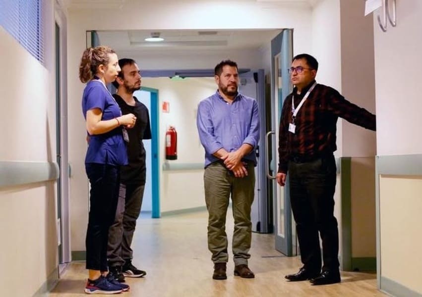 Durante su visita, el Delegado Presidencial recorrió distintas áreas del hospital, incluyendo Hospitalizados, Pabellones, Diálisis, Urgencia y Laboratorio, donde pudo observar el crecimiento y desarrollo del recinto.