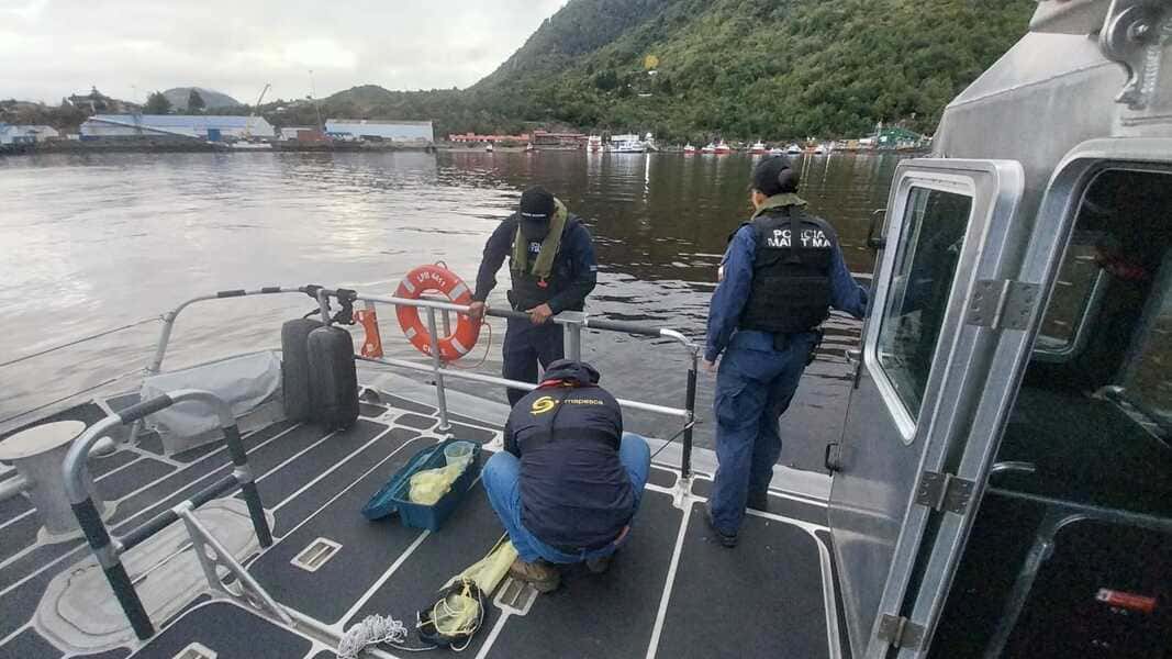 Tras una alerta recibida por la presencia de una mancha de color rojizo en las aguas de la bahía de Puerto Chacabuco, funcionarios del Servicio Nacional de Pesca y Acuicultura (Sernapesca) de la región de Aysén, en coordinación con la Autoridad Marítima y la Brigada de Delitos Ambientales de la Policía de Investigaciones (BIDEMA), se trasladaron al sector con el objetivo de tomar muestras, determinar el origen y evaluar eventuales implicancias ambientales del fenómeno.
