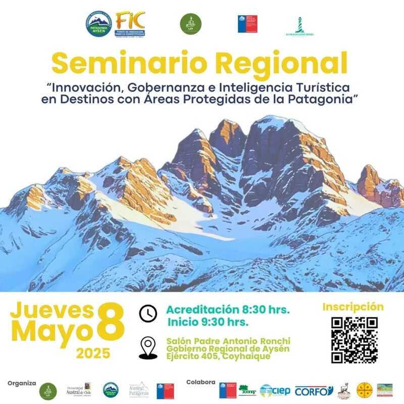 El seminario regional «Innovación, Gobernanza e Inteligencia Turística en Destinos con Áreas Protegidas de la Patagonia» se enmarca «en un proyecto FIC financiado por el Gobierno Regional de Aysén y ejecutado por la Universidad Austral de Chile a través del Campus Patagonia y el Instituto de Turismo, cuyo objetivo es fomentar la colaboración y el intercambio de información acerca del turismo sustentable en áreas protegidas y territorios aledaños, a través de procesos territoriales asociativos«.