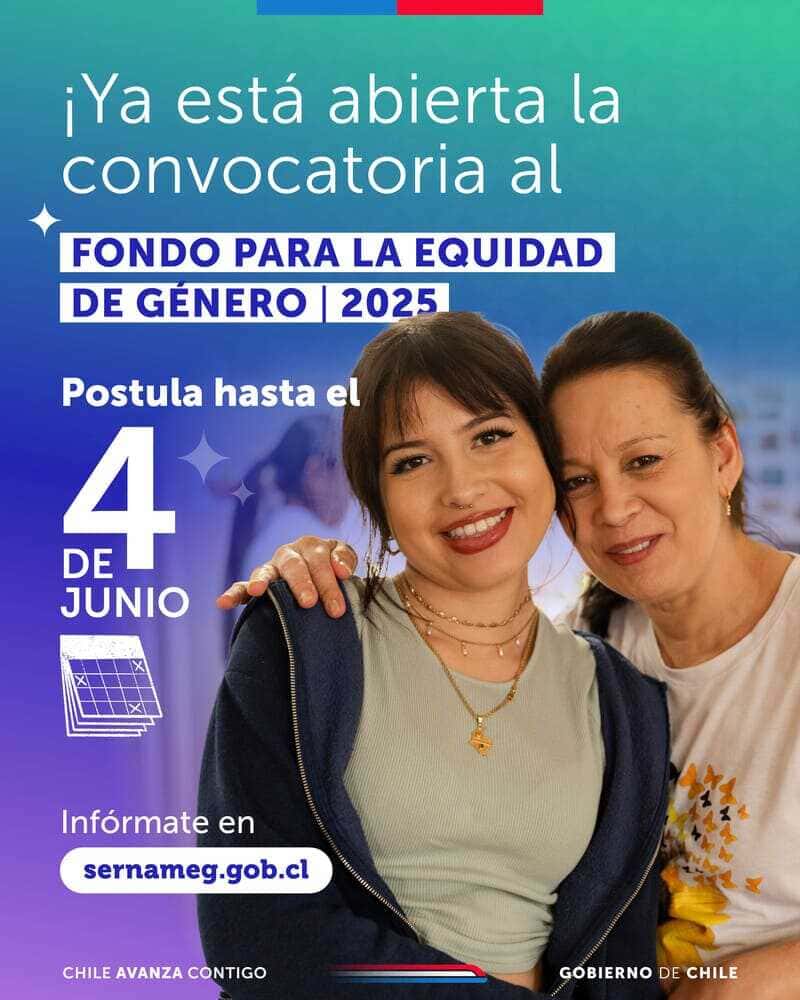 Para más información y dudas sobre el proceso, las interesadas pueden dirigirse a la mesa de ayuda en el portal fondos.gob.cl o visitar el enlace https://www.sernameg.gob.cl/convocatoria-2025-fondo-para-la-equidad-de-genero, donde podran encontrar criterios, plazos y todos los detalles para realizar su postulación, además de videos explicativos de los talleres abiertos realizados por SernamEG y la Segegob.