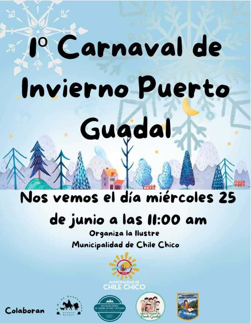 Siguiendo la tradición que desde hace algunos años se ha reinstalado en Puerto Guadal de desarrollar actividades más allá del verano, esta semana se realizará en la costera localidad el 1er Carnaval de Invierno de la costera localidad. Serán cuatro días de actividades, en un trabajo liderado por la Delegación de Puerto Guadal de la Municipalidad de Chile Chico con la colaboración de la Junta de Vecinos N8, la Ag de Turismo, la AG de Campesinos y la Escuela Libertador Bernardo O’Higgins.