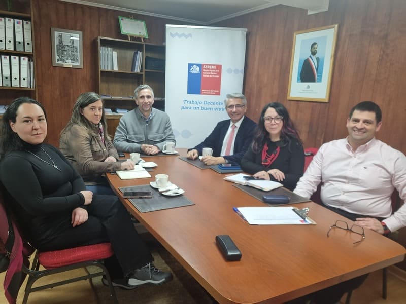Para informar a los empleadores sobre este tema, el Seremi del Trabajo y Previsión Social y director del Trabajo, Christian Aros se reunió con el director regional del Instituto de Previsión Social, IPS ChileAtiende, Rodrigo Díaz, con la nueva directiva de la Cámara de Comercio, Industrias y Servicios de Coyhaique, presidida por Daissy Mondelo, quien estuvo acompañada por el secretario de la directiva, Raúl Vargas y la secretaria ejecutiva del gremio, Paola Hernández.