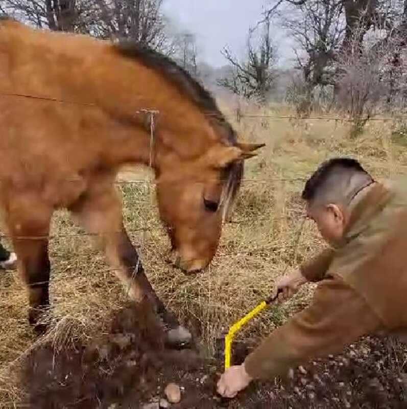 Ambos funcionarios descendieron de la patrulla y se acercaron al equino, pudiendo percatarse que -al parecer- estaba enredado en la herradura, tras lo cual regresaron por el bolso táctico desde el cual extrajeron un napoleón, herramienta con que lograron cortar el alambre acerado, pudiendo liberar el caballar en un oportuno actuar, sin causar lesiones al animal.