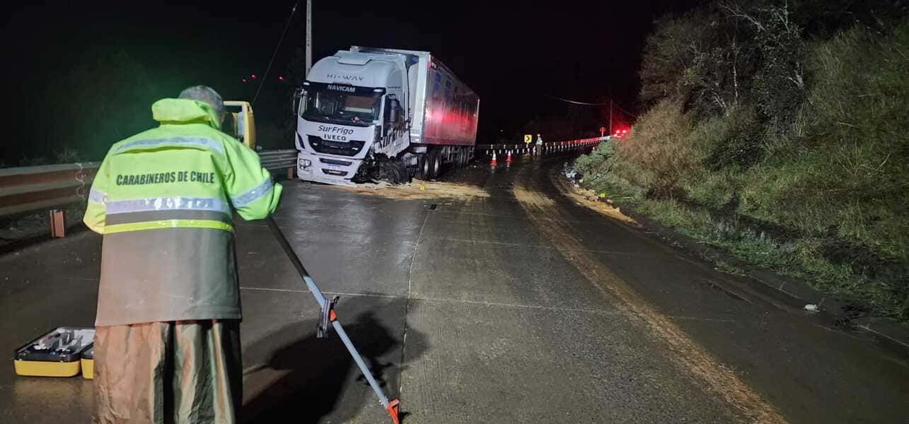 Los antecedentes del procedimiento fueron remitidos a la Fiscalía, permaneciendo el conductor del vehículo de carga en espera de citación por parte del organismo persecutor. Asimismo, fue dispuesta la concurrencia de la Sección de Investigación de Accidentes del Tránsito (SIAT) de Carabineros para el trabajo del sitio del suceso.