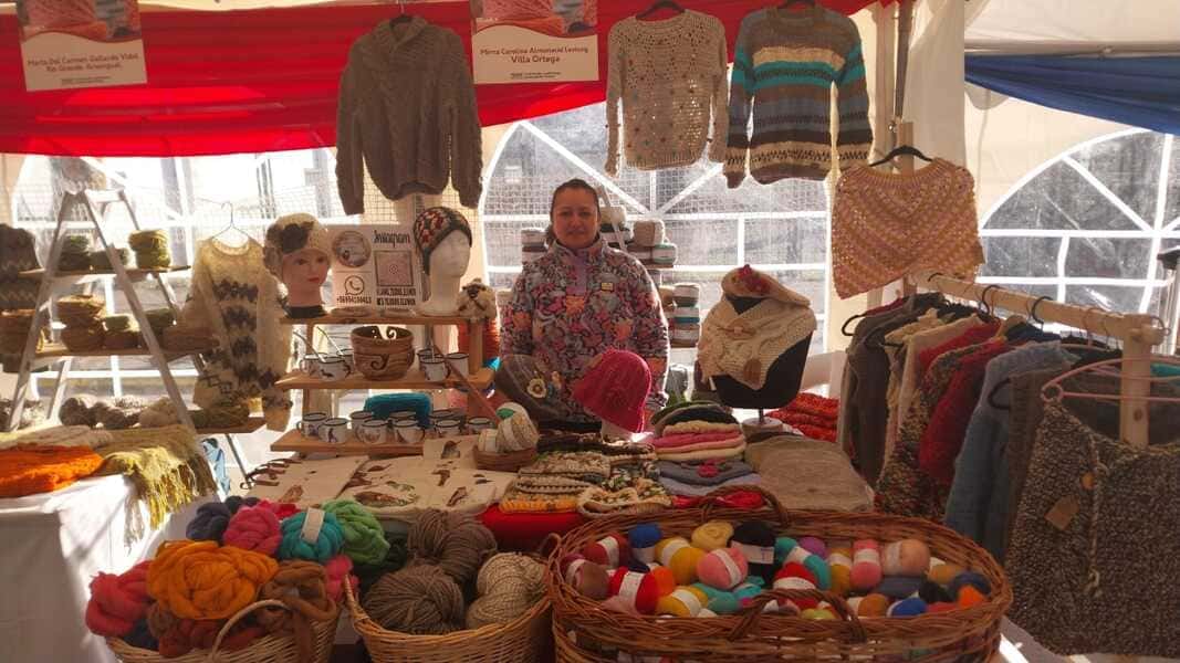 Durante la feria, el público pudo acceder a una amplia variedad de productos elaborados con lana patagónica, desde pieceras, echarpes y bajadas de cama hasta tejidos más innovadores que rescatan técnicas tradicionales transmitidas por generaciones.