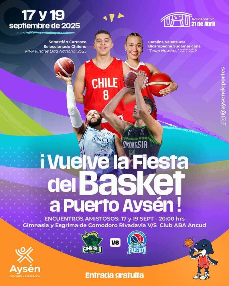 El evento contará con la participación del reconocido jugador “Seba” Carrasco, figura de la Liga Nacional de Básquetbol, y de Catalina Valenzuela, quien vuelve a Aysén para compartir su experiencia con las nuevas generaciones, evocando la nostalgia de cuando el histórico equipo femenino se coronó campeón sudamericano en la comuna.