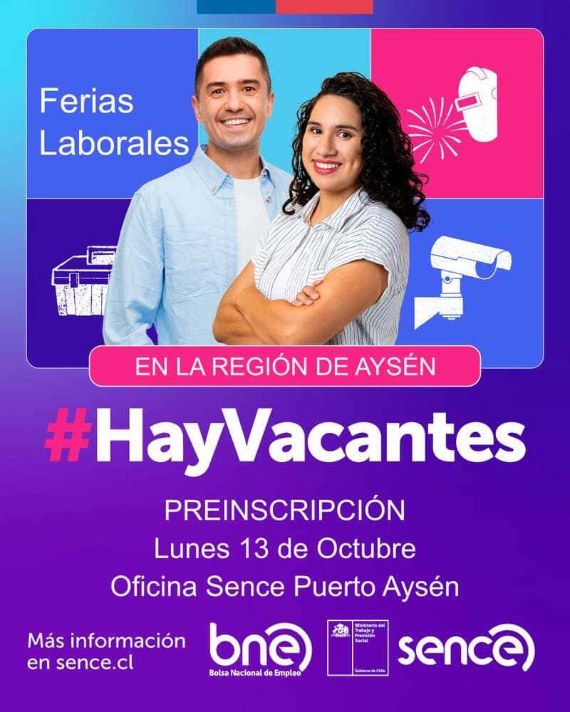 Feria Laboral #HayVacantes reunirá más de 200 oportunidades de empleo este 14 de octubre en Puerto Aysén