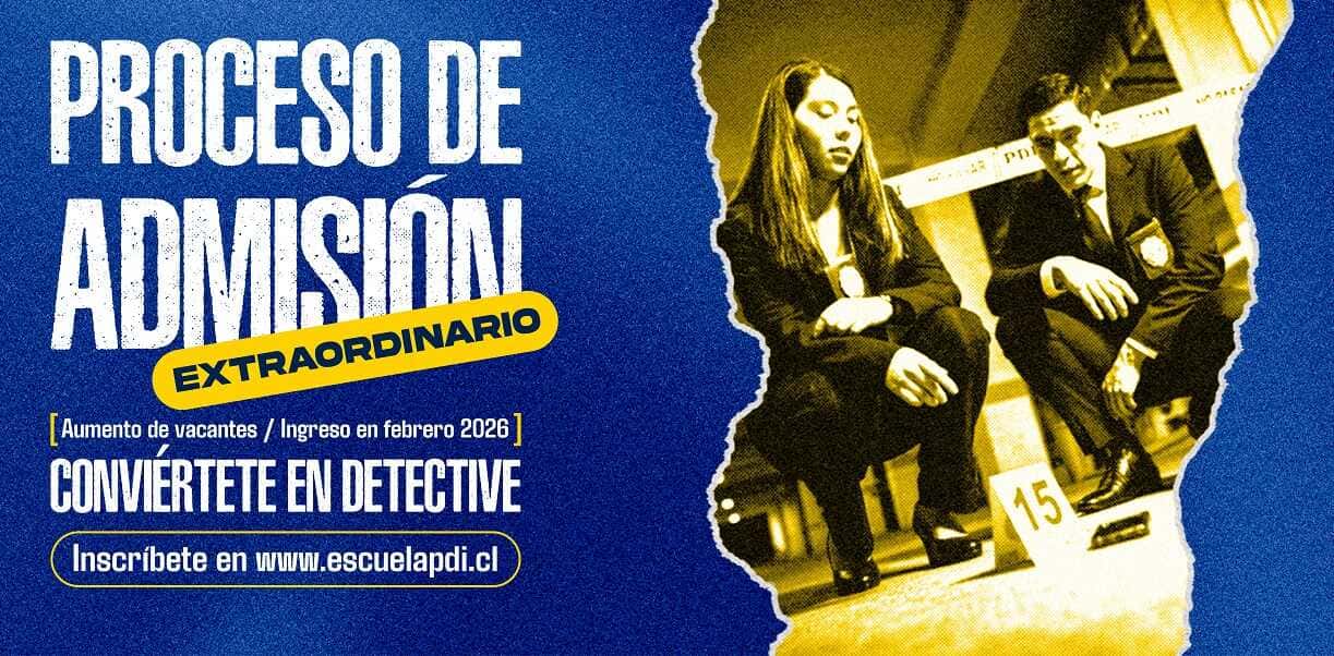 La Escuela de Investigaciones Policiales abrió un proceso “extraordinario” de admisión para el escalafón de oficiales de línea. El plazo será hasta el 07 de noviembre del presente año y tiene como finalidad de darle la oportunidad a todos los jóvenes que no alcanzaron a inscribirse en la convocatoria oficial de convertirse en futuros Detectives de Chile. Los postulantes que sean elegidos y que logren pasar todas las pruebas, se integrarán la Promoción 2026-2029 de la Escuela de Investigaciones Policiales, Presidente Arturo Alessandri Palma.