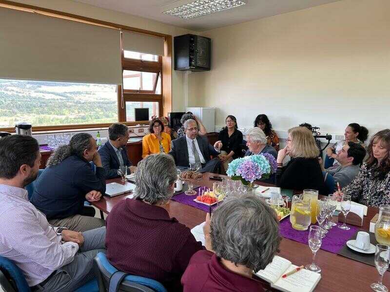 Durante esta visita, la delegación internacional fue acompañada por el Prorrector, Gustavo Blanco y el Vicerrector de la VIDCA, Luis Miguel Pardo, además del Director del Campus Patagonia, prof. Juan Carlos Miranda, docentes y funcionarios de la macrounidad.