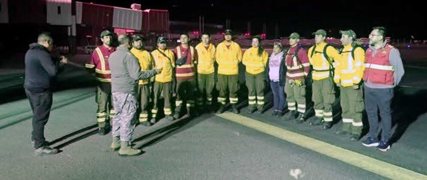 Dos brigadas de la región fueron trasladadas durante la noche del sábado en una aeronave de la Fuerza Aérea de Chile, como parte del refuerzo interregional dispuesto para enfrentar los incendios forestales en la zona centro-sur del país