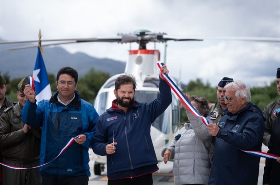 En la segunda jornada de su gira por la Región de Aysén, el Presidente de la República, Gabriel Boric Font, inauguró el nuevo punto de posada de helicópteros en el Aeródromo de La Junta, comuna de Cisnes, junto a la ministra de Obras Públicas, Jessica López; la ministra (s) de Salud, Andrea Albagli; el gobernador de la Región de Aysén del General Carlos Ibáñez del Campo, Marcelo Santana; y el alcalde de Cisnes, Francisco Roncagliolo.
